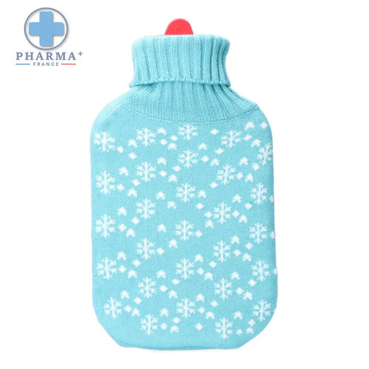 Hot water bottle blue white snowflakes knitted cover 1 unit