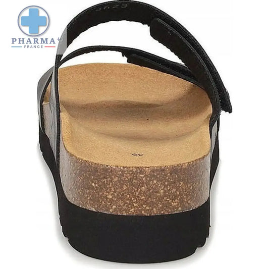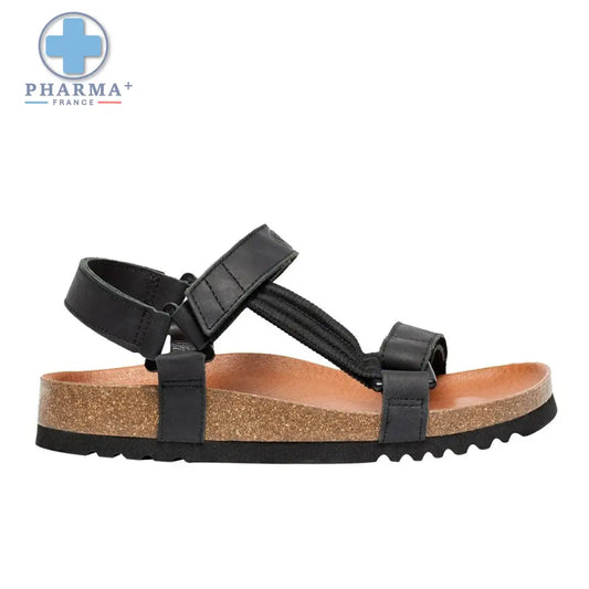 Scholl black leather sandals with comfortable cork sole, 1 pair