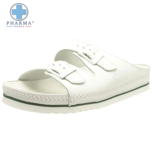 Scholl clogs scholl perforated leather white adjustable strap 1 pair