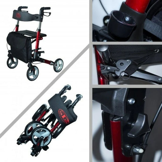 Antar folding walker with seat and bag wheels antar at51006 1 unit