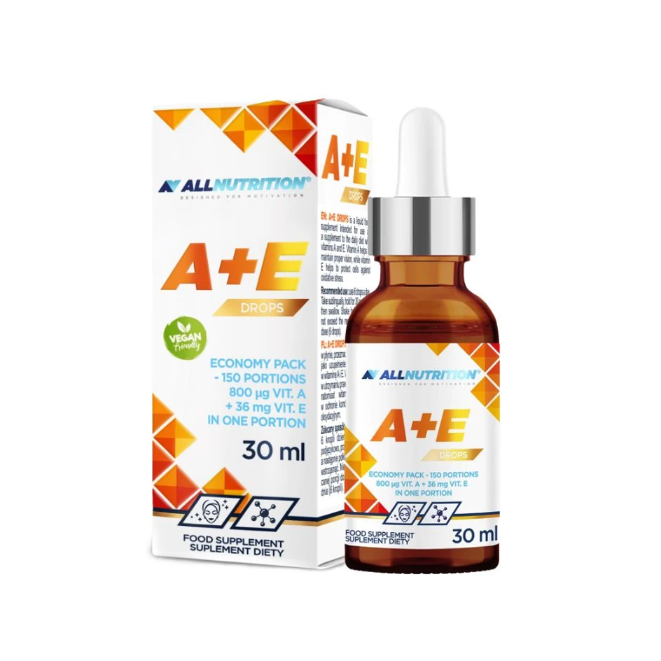 ALLNUTRITION VIT A+E DROPS is a liquid dietary supplement combining vitamins A and E to supplement daily intake of these essential micronutrients. This convenient, dosable drop format allows for easy integration into a daily diet and is suitable for those who wish to support the maintenance of normal vision, healthy skin, and the protection of cells against oxidative stress, in accordance with the claims recognized in official standards.