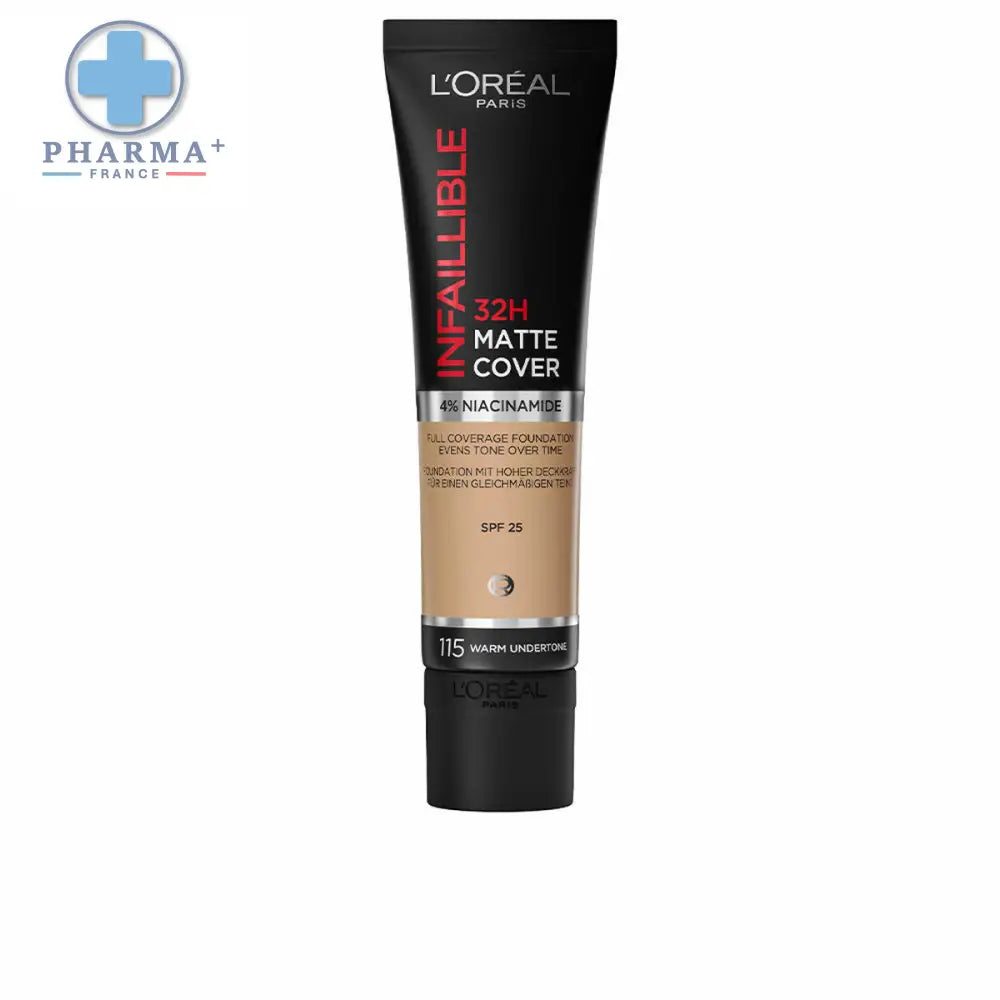 Base de Teint Liquide L'Oréal Make Up Infalible 32H Matte Cover Nº 115 Warm Undertone SPF 25 (30 ml)