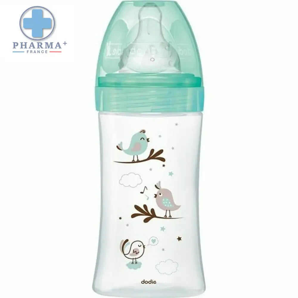 Dodie biberon motif oiseaux transparent bouchon vert clair 1 unité