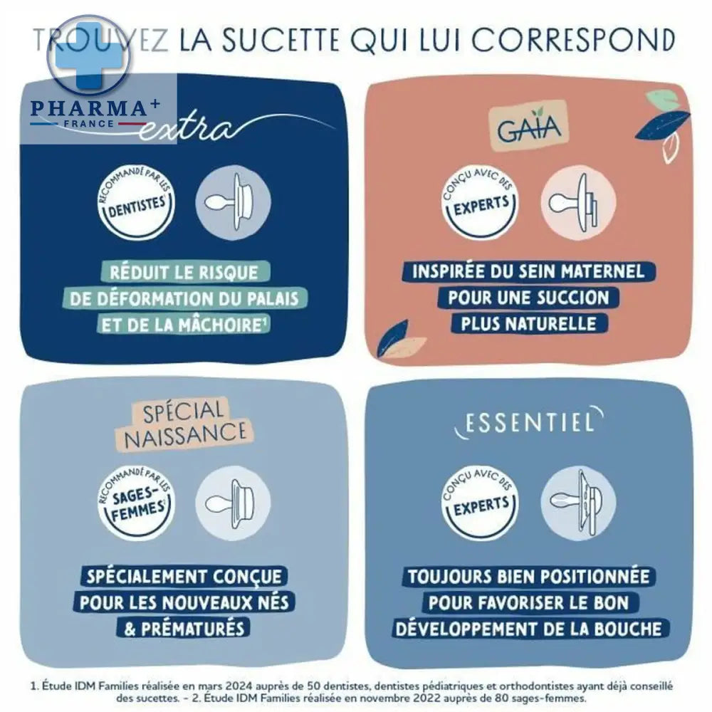 - Forme anatomique adaptée au palais des bébés