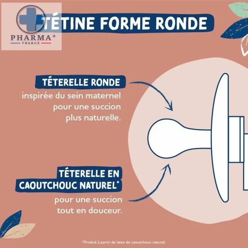 - Tétine physiologique en silicone, adaptée à la morphologie buccale de bébé